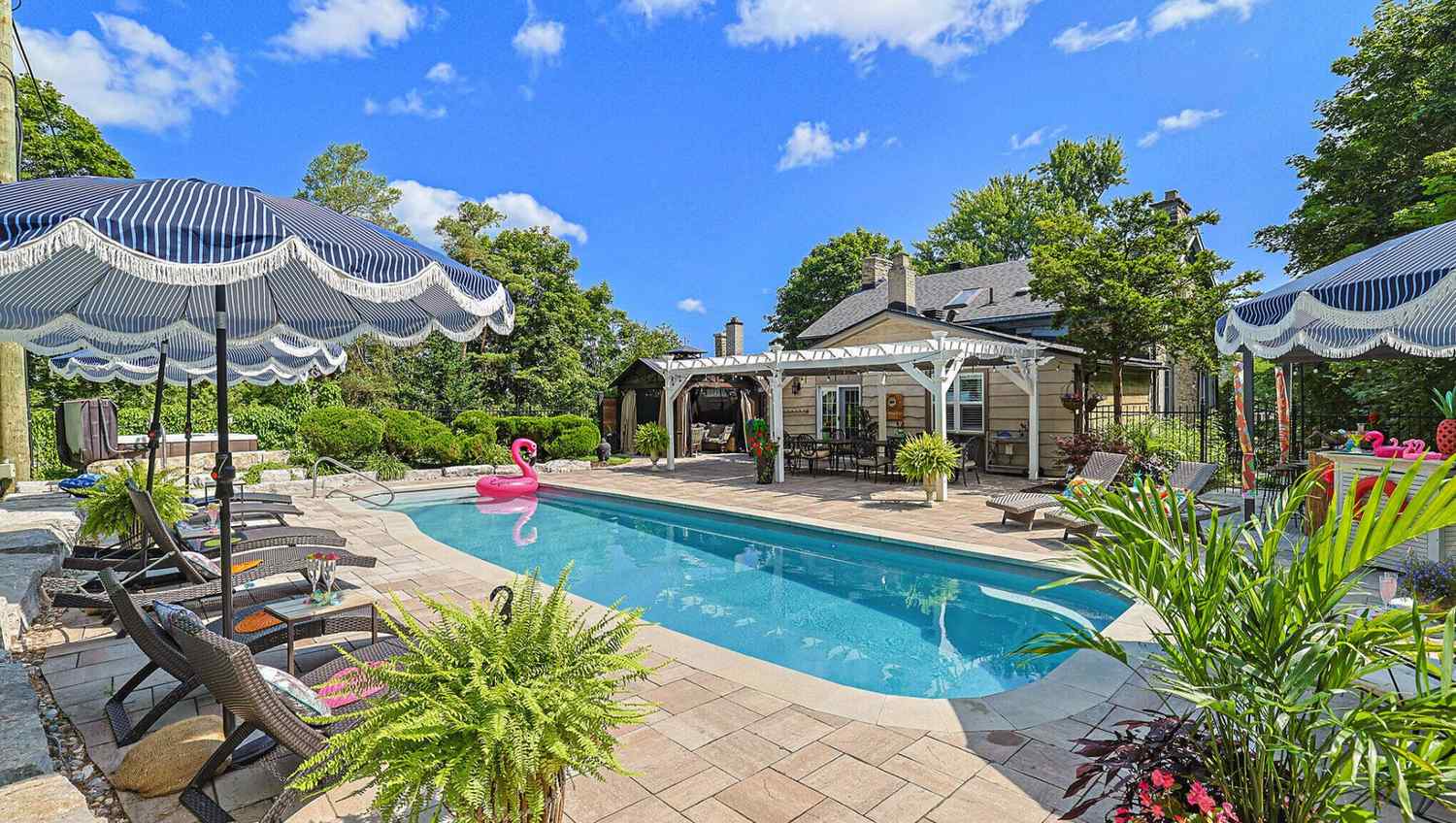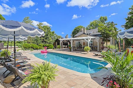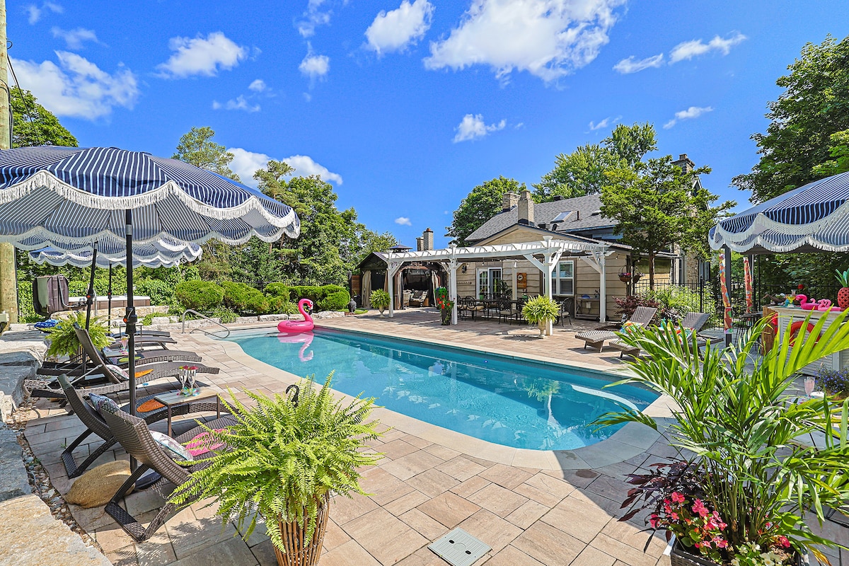 Georgian waterfront estate with heated salt water pool, hot tub, fire pit & docks. Play badminton, croquette, kayak, bike, fish, canoe or relax poolside. Optional private chef can cater 3 course meals from $38/ person (BYOB) in our private dining room or pool side. Walk to the Mississippi Golf Club or spend the day in trendy Almonte. Perfect for “out of town” wedding guests or get ready here on your wedding day. Close to many wedding venues like Stonefields & Evermore. Great Local Food tours.